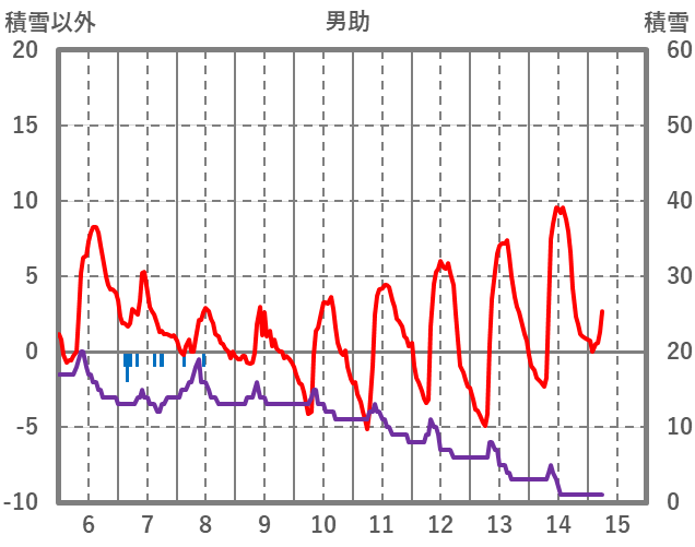 | 日 | 時 | 気温 | 降水 | 風向/風速 | 日照 | 積雪 | 降雪 |