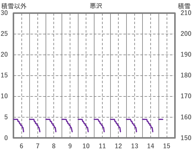 | 日 | 時 | 気温 | 降水 | 風向/風速 | 日照 | 積雪 | 降雪 |