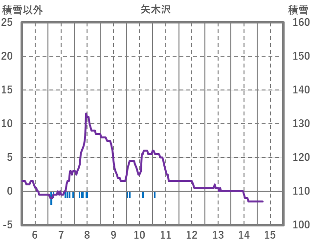 | 日 | 時 | 気温 | 降水 | 風向/風速 | 日照 | 積雪 | 降雪 |