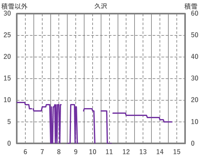 | 日 | 時 | 気温 | 降水 | 風向/風速 | 日照 | 積雪 | 降雪 |