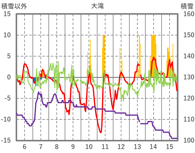 | 日 | 時 | 気温 | 降水 | 風向/風速 | 日照 | 積雪 | 降雪 |