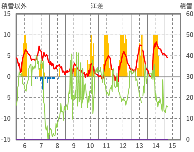 | 日 | 時 | 気温 | 降水 | 風向/風速 | 日照 | 積雪 | 降雪 |