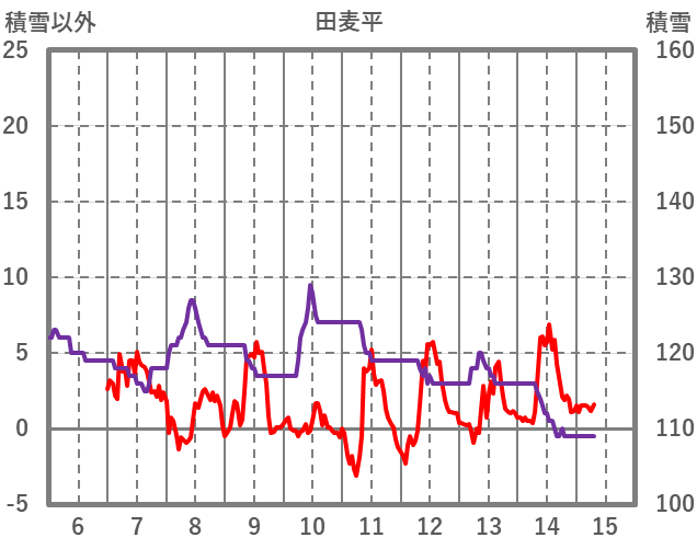 | 日 | 時 | 気温 | 降水 | 風向/風速 | 日照 | 積雪 | 降雪 |