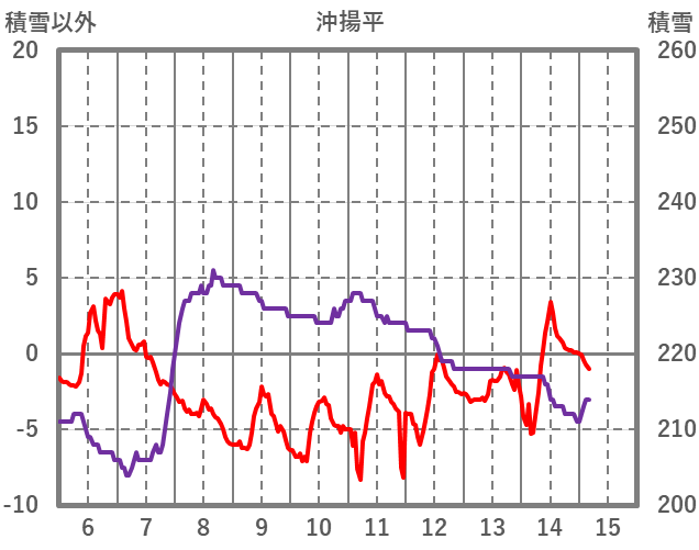 | 日 | 時 | 気温 | 降水 | 風向/風速 | 日照 | 積雪 | 降雪 |