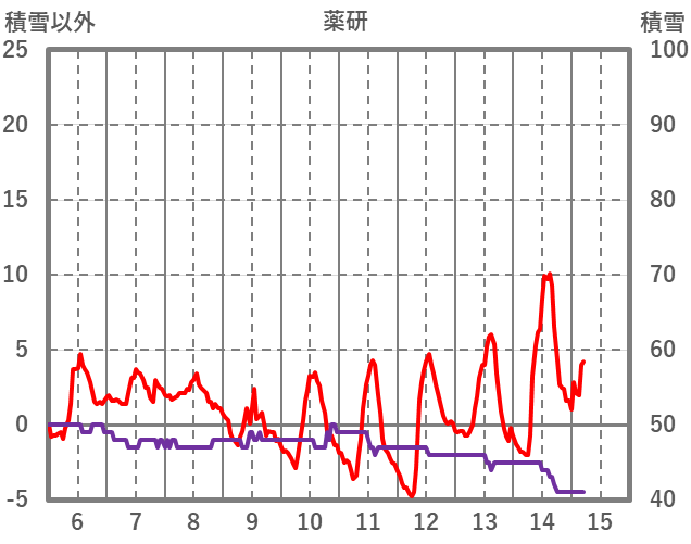 | 日 | 時 | 気温 | 降水 | 風向/風速 | 日照 | 積雪 | 降雪 |