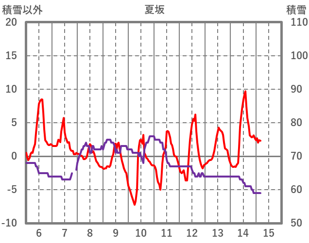| 日 | 時 | 気温 | 降水 | 風向/風速 | 日照 | 積雪 | 降雪 |