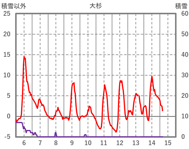 | 日 | 時 | 気温 | 降水 | 風向/風速 | 日照 | 積雪 | 降雪 |