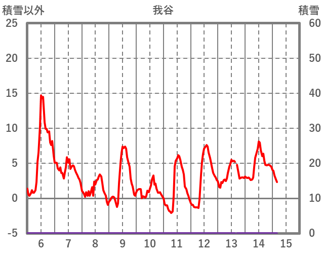 | 日 | 時 | 気温 | 降水 | 風向/風速 | 日照 | 積雪 | 降雪 |