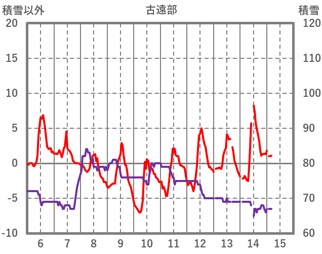 | 日 | 時 | 気温 | 降水 | 風向/風速 | 日照 | 積雪 | 降雪 |
