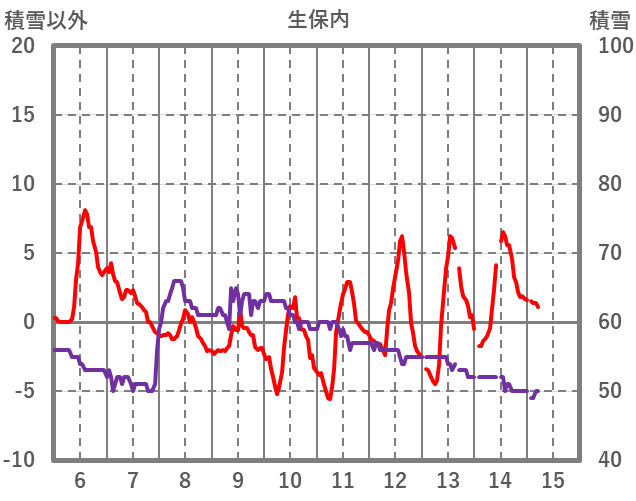 | 日 | 時 | 気温 | 降水 | 風向/風速 | 日照 | 積雪 | 降雪 |