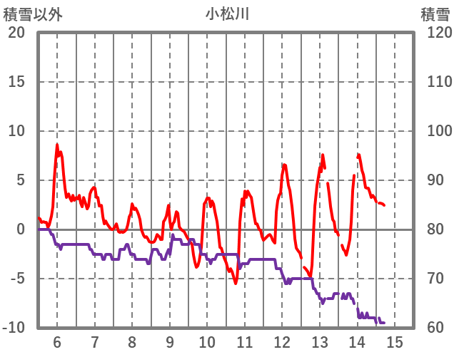 | 日 | 時 | 気温 | 降水 | 風向/風速 | 日照 | 積雪 | 降雪 |