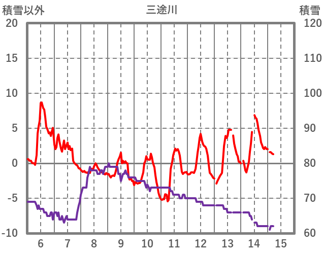 | 日 | 時 | 気温 | 降水 | 風向/風速 | 日照 | 積雪 | 降雪 |