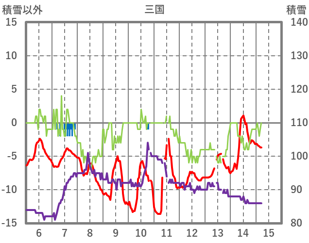 | 日 | 時 | 気温 | 降水 | 風向/風速 | 日照 | 積雪 | 降雪 |