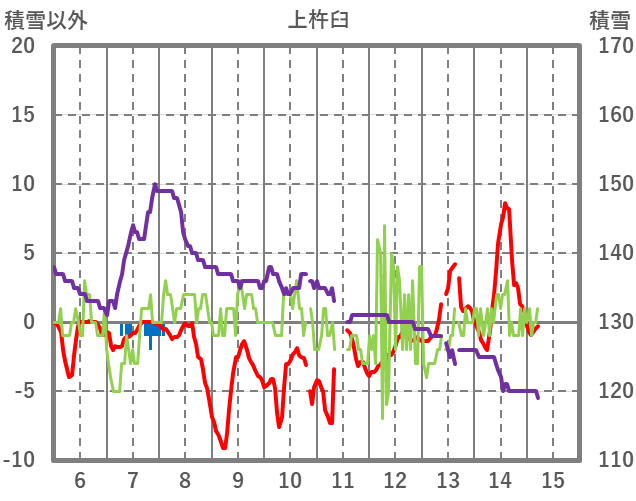 | 日 | 時 | 気温 | 降水 | 風向/風速 | 日照 | 積雪 | 降雪 |