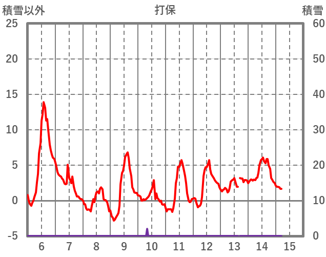 | 日 | 時 | 気温 | 降水 | 風向/風速 | 日照 | 積雪 | 降雪 |