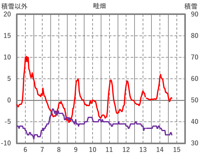 | 日 | 時 | 気温 | 降水 | 風向/風速 | 日照 | 積雪 | 降雪 |