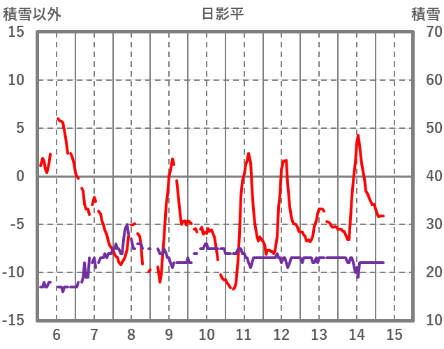 | 日 | 時 | 気温 | 降水 | 風向/風速 | 日照 | 積雪 | 降雪 |