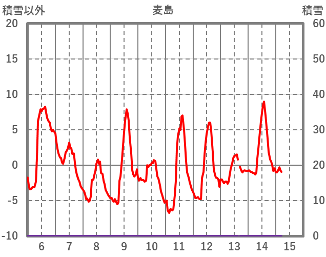 | 日 | 時 | 気温 | 降水 | 風向/風速 | 日照 | 積雪 | 降雪 |