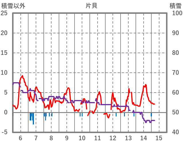 | 日 | 時 | 気温 | 降水 | 風向/風速 | 日照 | 積雪 | 降雪 |