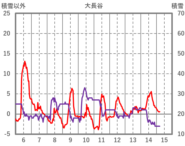 | 日 | 時 | 気温 | 降水 | 風向/風速 | 日照 | 積雪 | 降雪 |