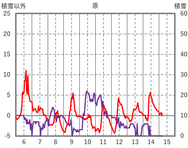 | 日 | 時 | 気温 | 降水 | 風向/風速 | 日照 | 積雪 | 降雪 |