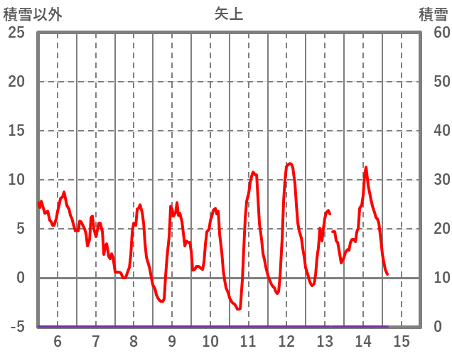 | 日 | 時 | 気温 | 降水 | 風向/風速 | 日照 | 積雪 | 降雪 |