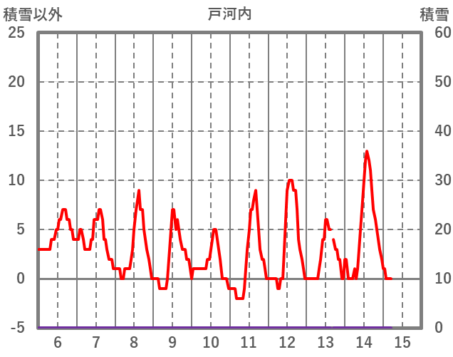 | 日 | 時 | 気温 | 降水 | 風向/風速 | 日照 | 積雪 | 降雪 |