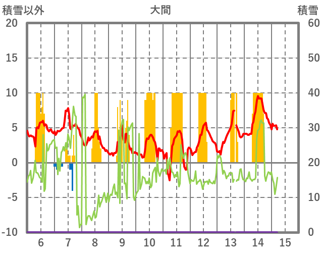 | 日 | 時 | 気温 | 降水 | 風向/風速 | 日照 | 積雪 | 降雪 |
