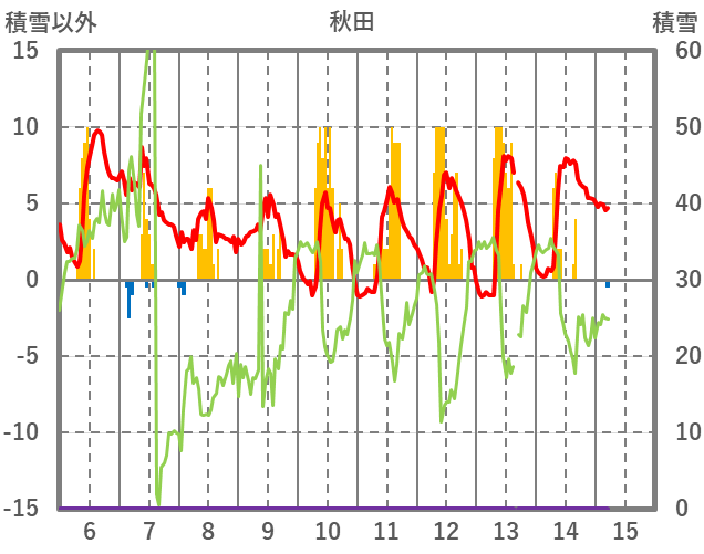 | 日 | 時 | 気温 | 降水 | 風向/風速 | 日照 | 積雪 | 降雪 |