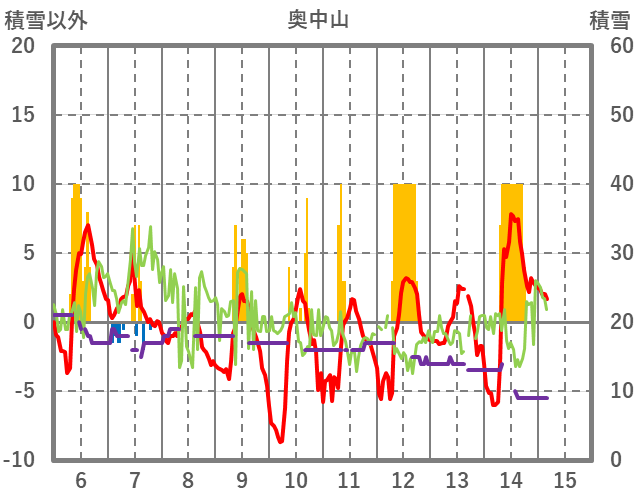 | 日 | 時 | 気温 | 降水 | 風向/風速 | 日照 | 積雪 | 降雪 |