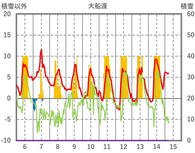 | 日 | 時 | 気温 | 降水 | 風向/風速 | 日照 | 積雪 | 降雪 |