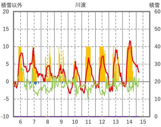 | 日 | 時 | 気温 | 降水 | 風向/風速 | 日照 | 積雪 | 降雪 |