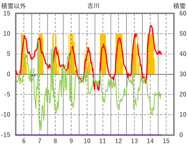 | 日 | 時 | 気温 | 降水 | 風向/風速 | 日照 | 積雪 | 降雪 |
