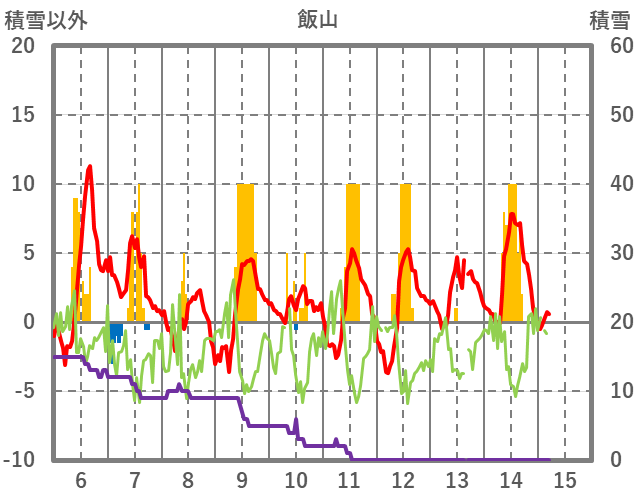 | 日 | 時 | 気温 | 降水 | 風向/風速 | 日照 | 積雪 | 降雪 |