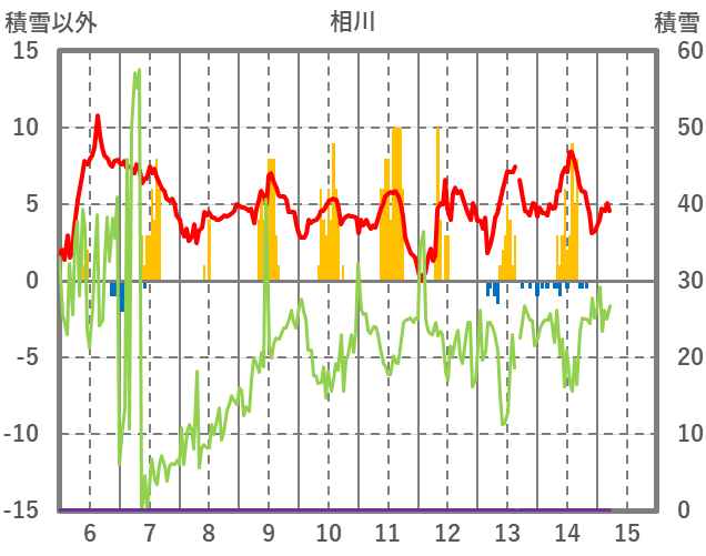 | 日 | 時 | 気温 | 降水 | 風向/風速 | 日照 | 積雪 | 降雪 |