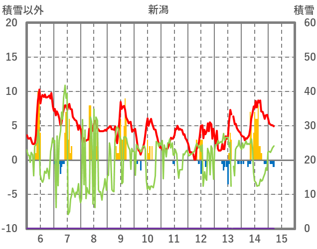 | 日 | 時 | 気温 | 降水 | 風向/風速 | 日照 | 積雪 | 降雪 |