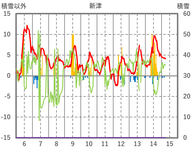 | 日 | 時 | 気温 | 降水 | 風向/風速 | 日照 | 積雪 | 降雪 |