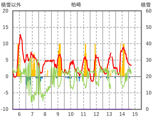 | 日 | 時 | 気温 | 降水 | 風向/風速 | 日照 | 積雪 | 降雪 |