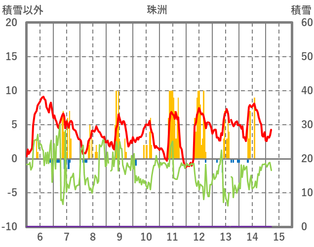 | 日 | 時 | 気温 | 降水 | 風向/風速 | 日照 | 積雪 | 降雪 |