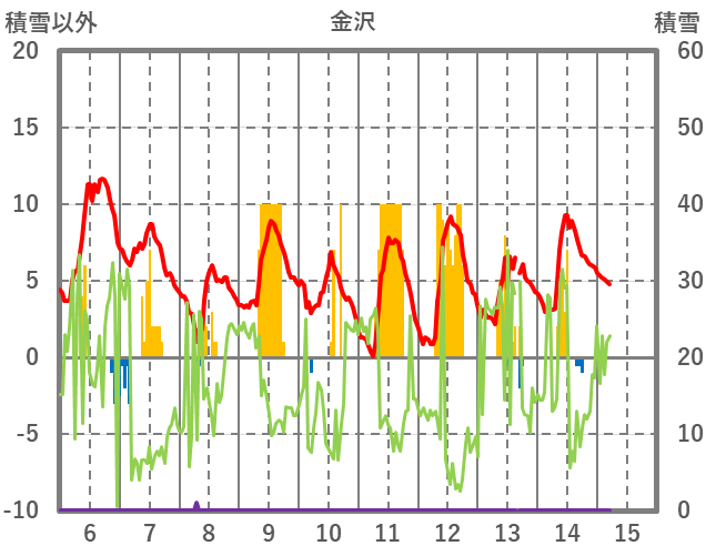 | 日 | 時 | 気温 | 降水 | 風向/風速 | 日照 | 積雪 | 降雪 |