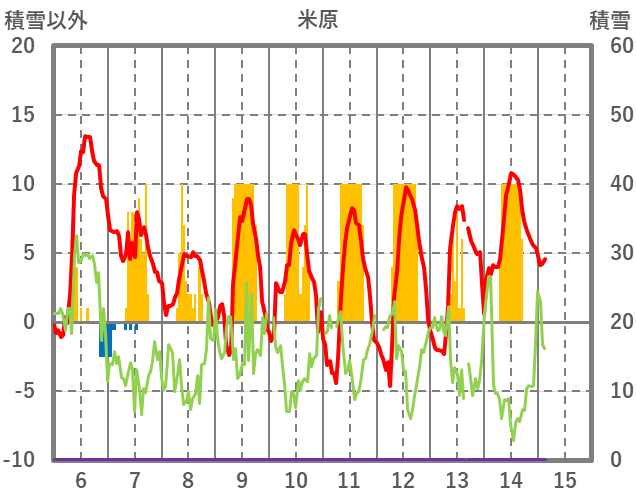 | 日 | 時 | 気温 | 降水 | 風向/風速 | 日照 | 積雪 | 降雪 |
