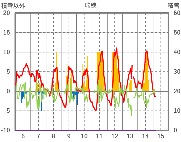 | 日 | 時 | 気温 | 降水 | 風向/風速 | 日照 | 積雪 | 降雪 |