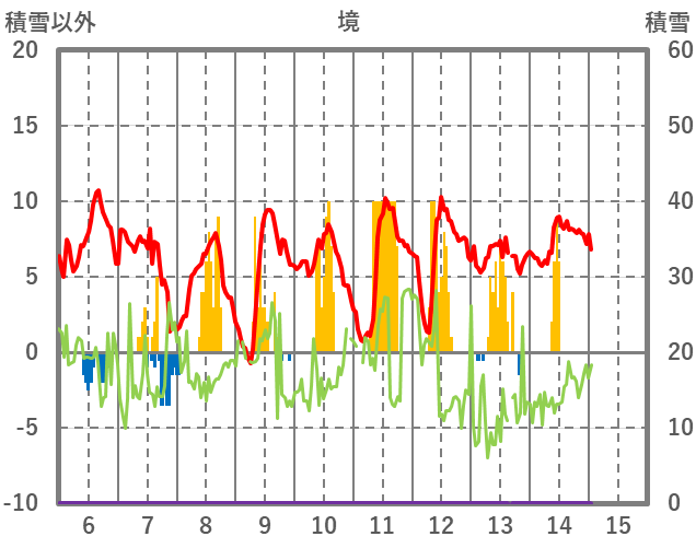 | 日 | 時 | 気温 | 降水 | 風向/風速 | 日照 | 積雪 | 降雪 |