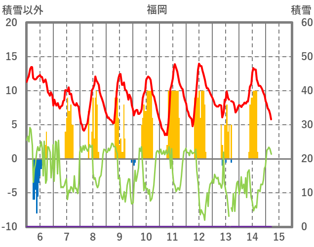 | 日 | 時 | 気温 | 降水 | 風向/風速 | 日照 | 積雪 | 降雪 |