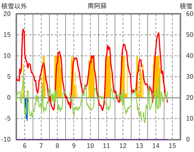 | 日 | 時 | 気温 | 降水 | 風向/風速 | 日照 | 積雪 | 降雪 |