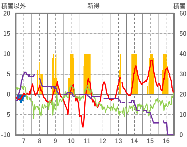 | 日 | 時 | 気温 | 降水 | 風向/風速 | 日照 | 積雪 | 降雪 |