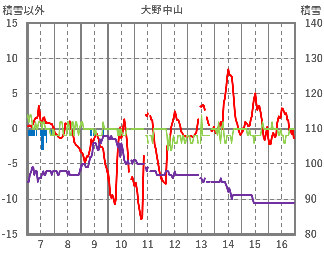 | 日 | 時 | 気温 | 降水 | 風向/風速 | 日照 | 積雪 | 降雪 |