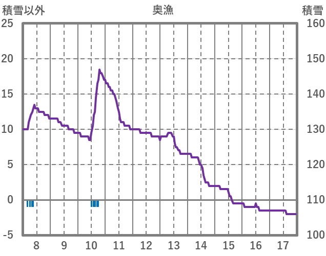 | 日 | 時 | 気温 | 降水 | 風向/風速 | 日照 | 積雪 | 降雪 |