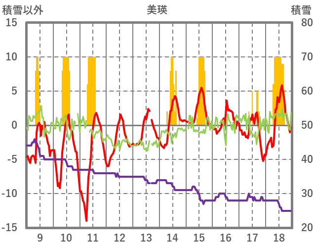 | 日 | 時 | 気温 | 降水 | 風向/風速 | 日照 | 積雪 | 降雪 |