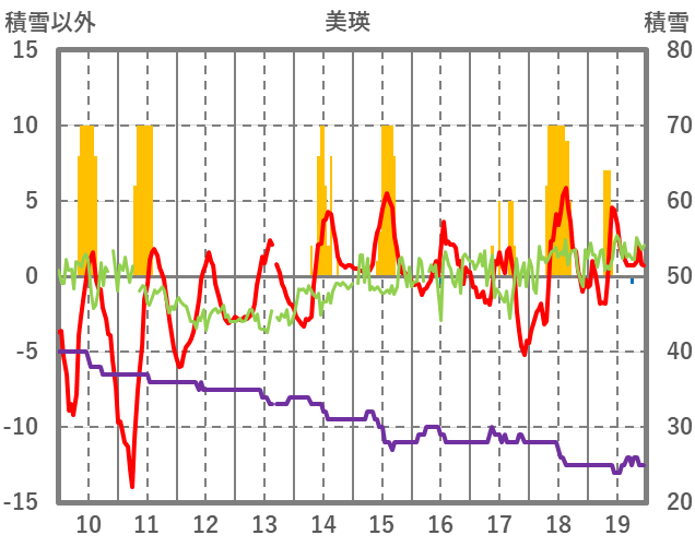| 日 | 時 | 気温 | 降水 | 風向/風速 | 日照 | 積雪 | 降雪 |